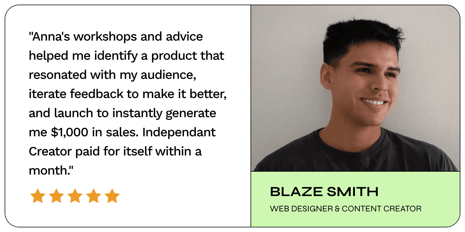 "Anna's workshops and advice helped me identify a product that resonated with my audience, iterate feedback to make it better, and launch to instantly generate me $1,000 in sales. Independent Creator paid for itself within a month"